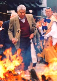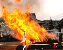 祈願をこめて火を点じて修法することを柴燈護摩といいその火の上を歩いて渡ることを火渡りといいます。